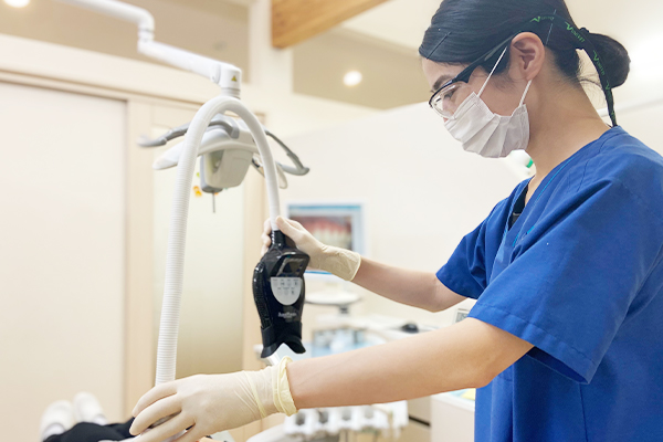 現在、実際の処置・診療の際にはフェイスシールドを着用しております。